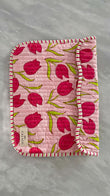 the exterior features a delicate, artisanal print on cotton, while the inside is quilted and padded to provide extra cushioning and protection for your device.