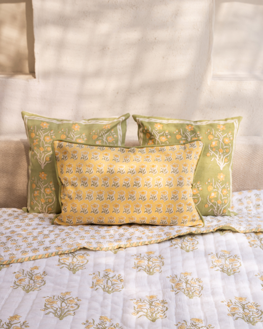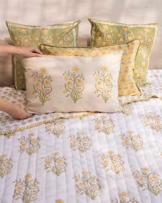 This Razai/quilt is crafted from two layers of organic cotton, block-printed by hand and filled...
